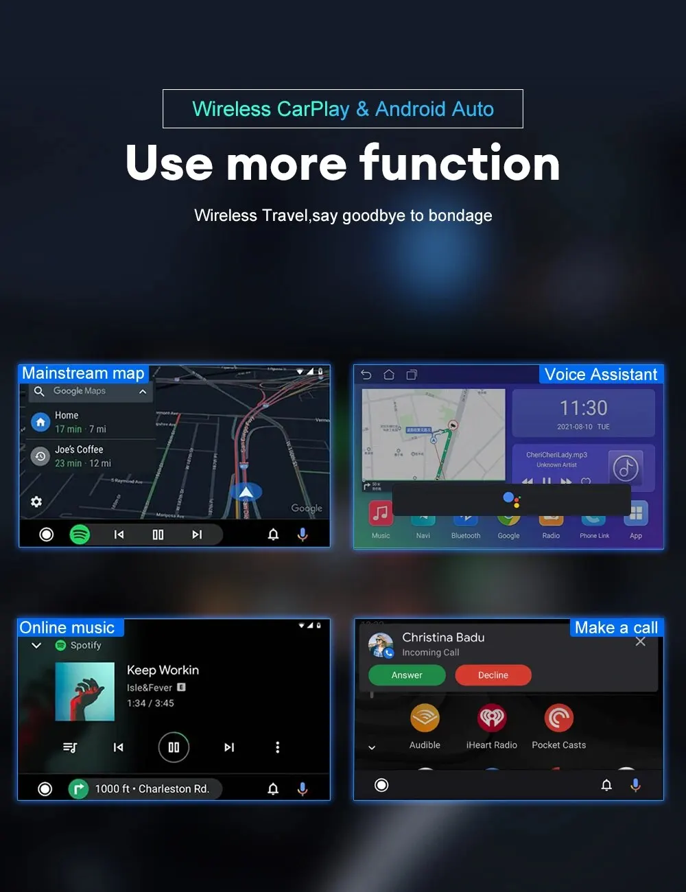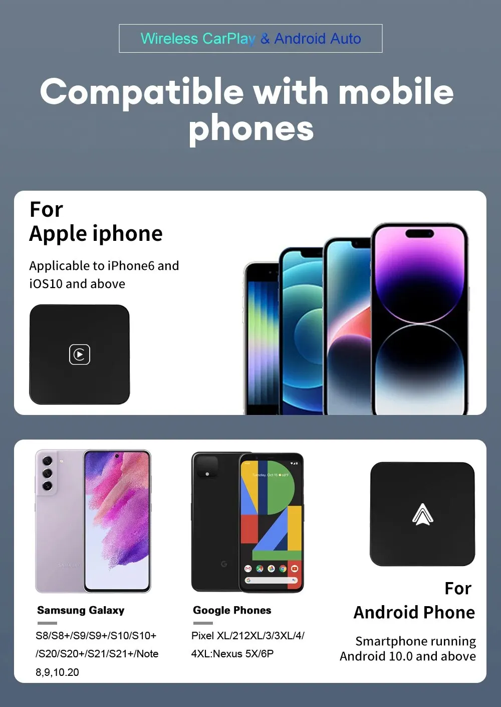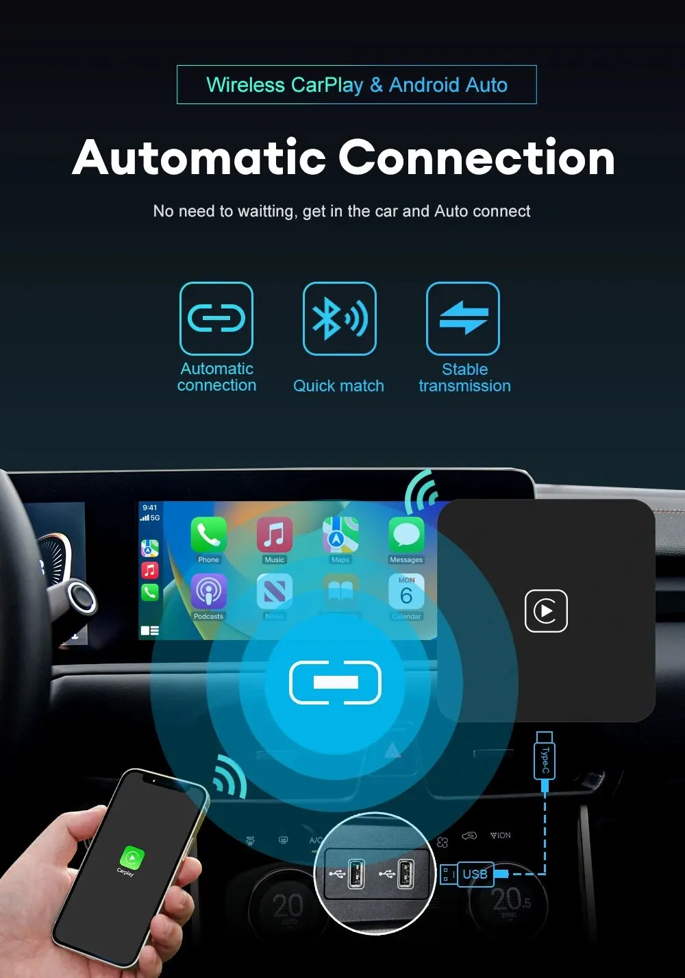 • Wired to Wireless Connectivity :Enjoy the freedom of wireless connectivity while still being able to use your phone's charging port with the Mini Carplay&Auto Box Dongle.