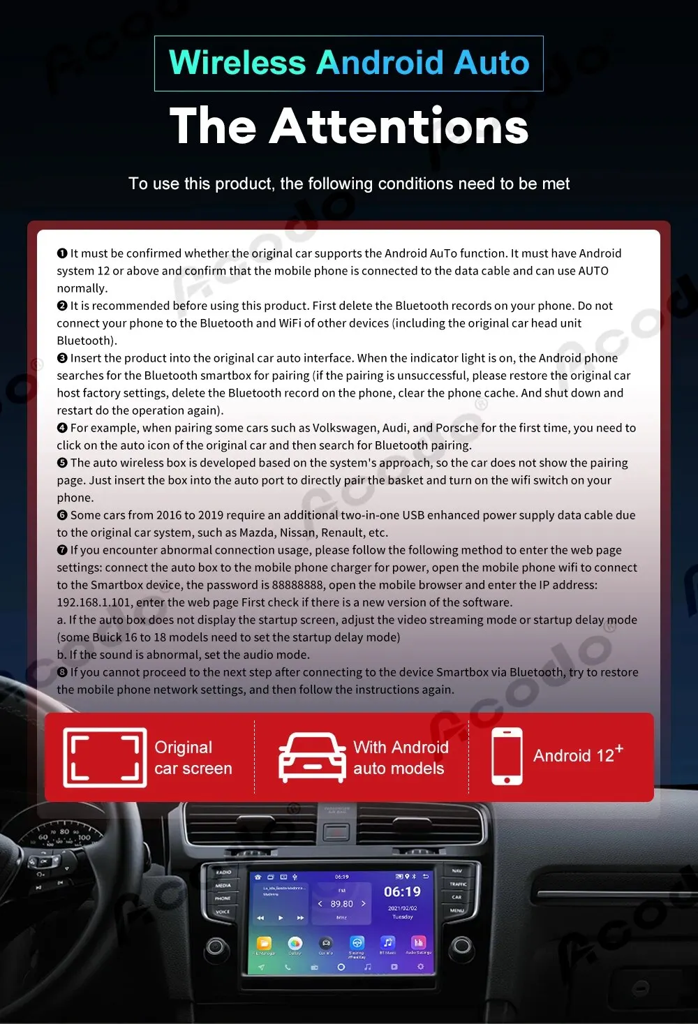 3. If you purchase Android Auto, it must be an Android system and version 10.0 or above before you can use it. Huawei's HarmonyOS system is not applicable